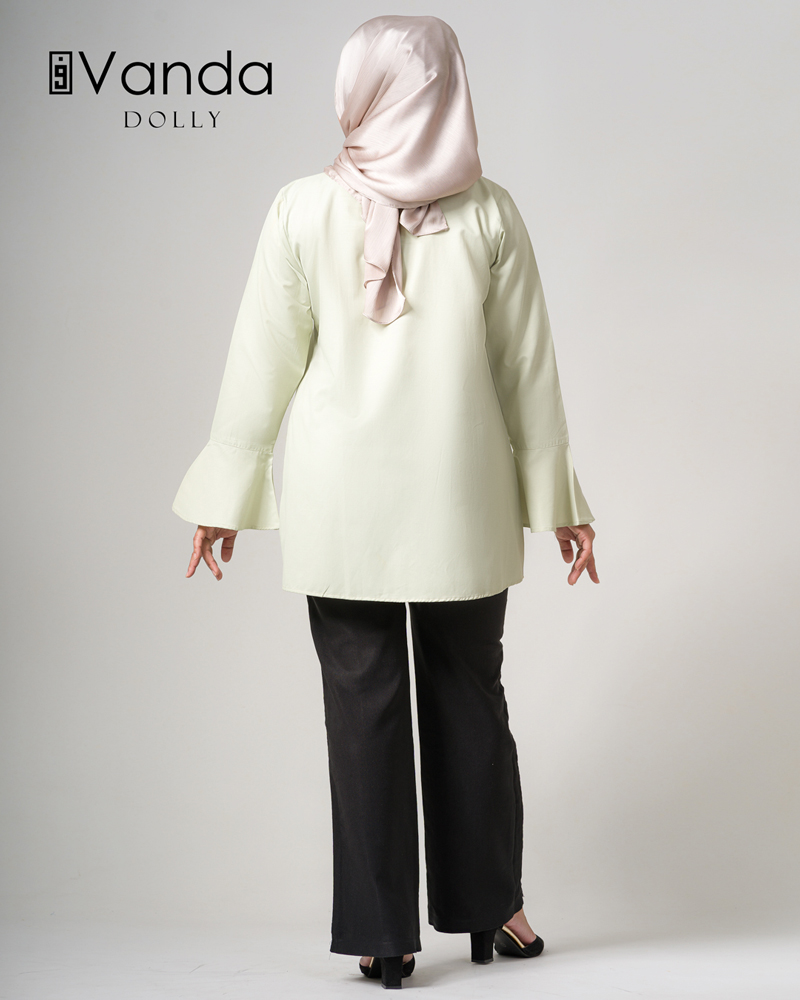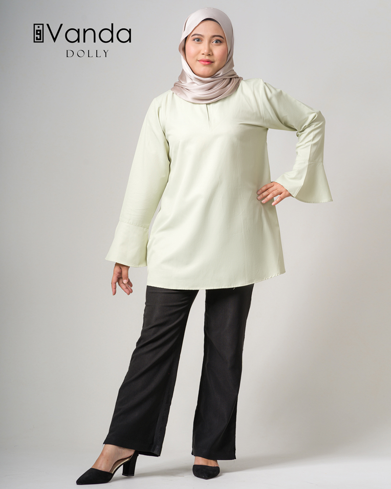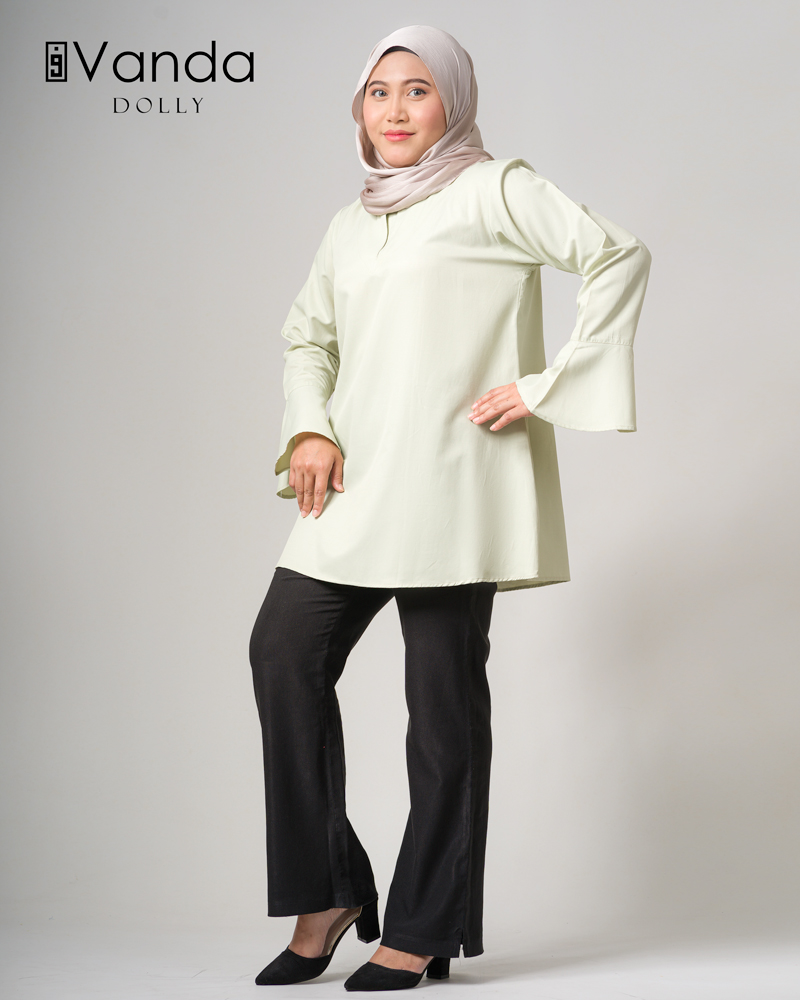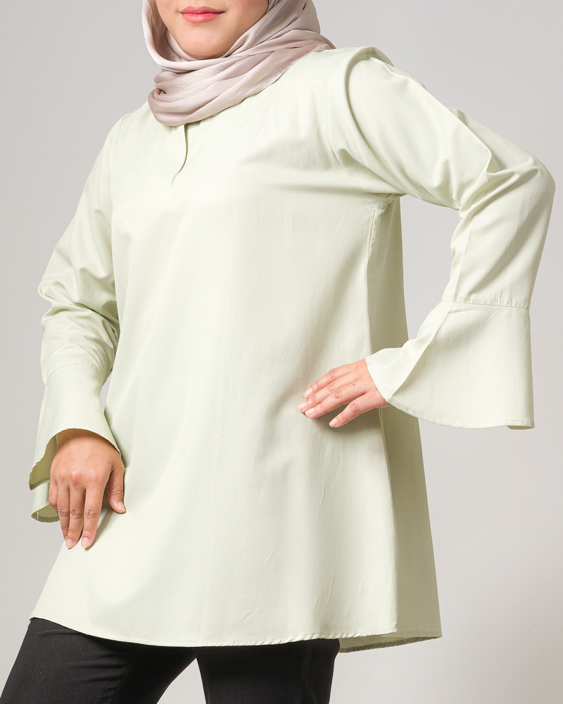 – Minimalist design with flared sleeves and buttoned cheongsam neckline